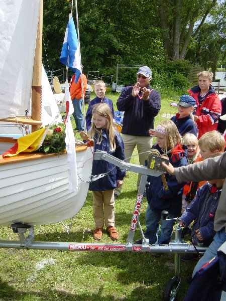 Sarah Stemmler sprach die bekannten Worten: "Ich taufe Dich auf den Namen 'Saesma' und wünsche Dir immer eine Handbreit Wasser unterm Kiel"
